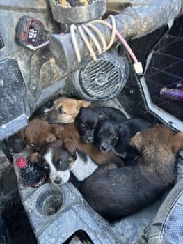 Soon, all seven puppies were settled together on the floorboard of an ATV. During the ride back home, they curled into one another, finally able to rest. One puppy climbed into Bowling’s lap and nestled close, a quiet gesture that felt like gratitude.