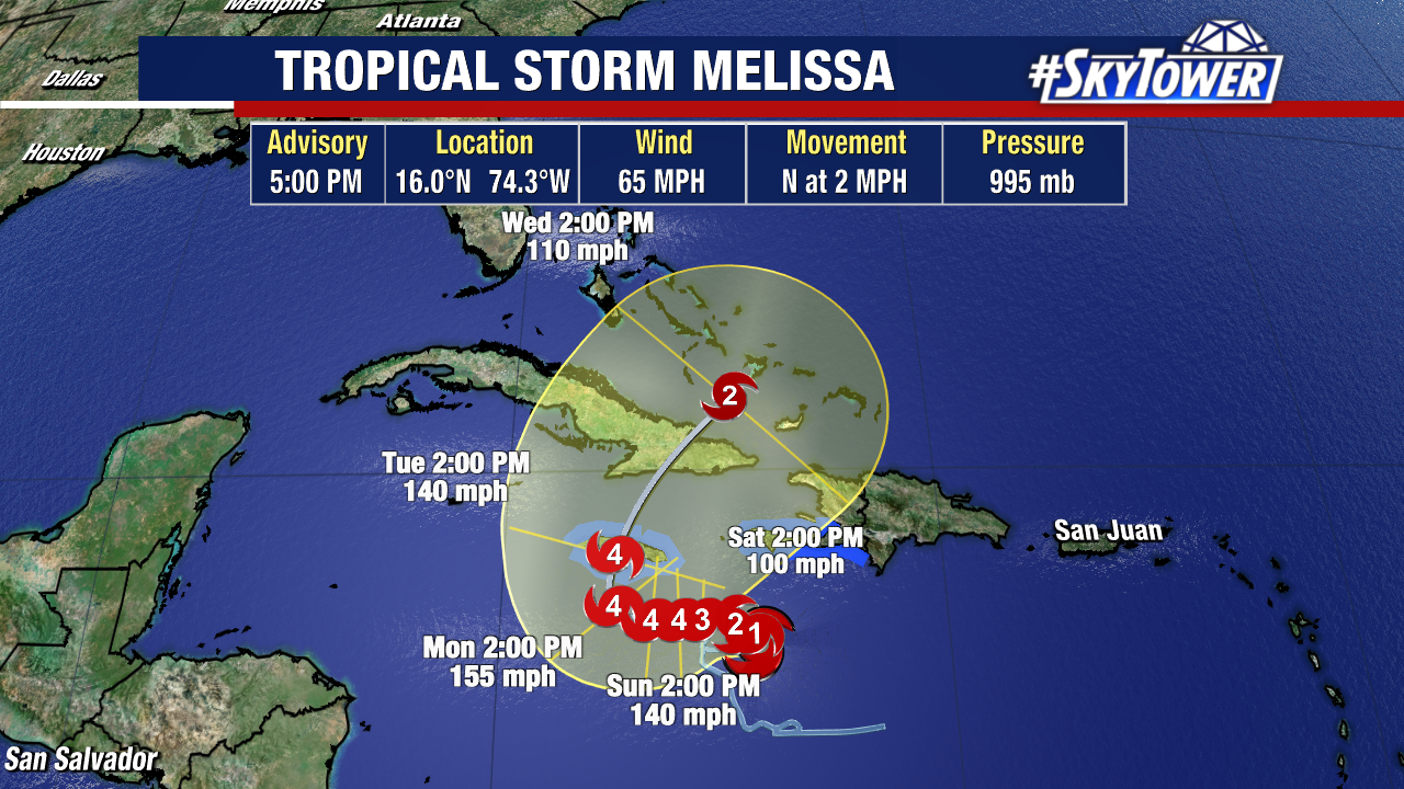 While storm surge and damaging winds will be major concerns with the storm, the flooding and landslide threat associated with slow-moving Melissa will be the primary hazard.